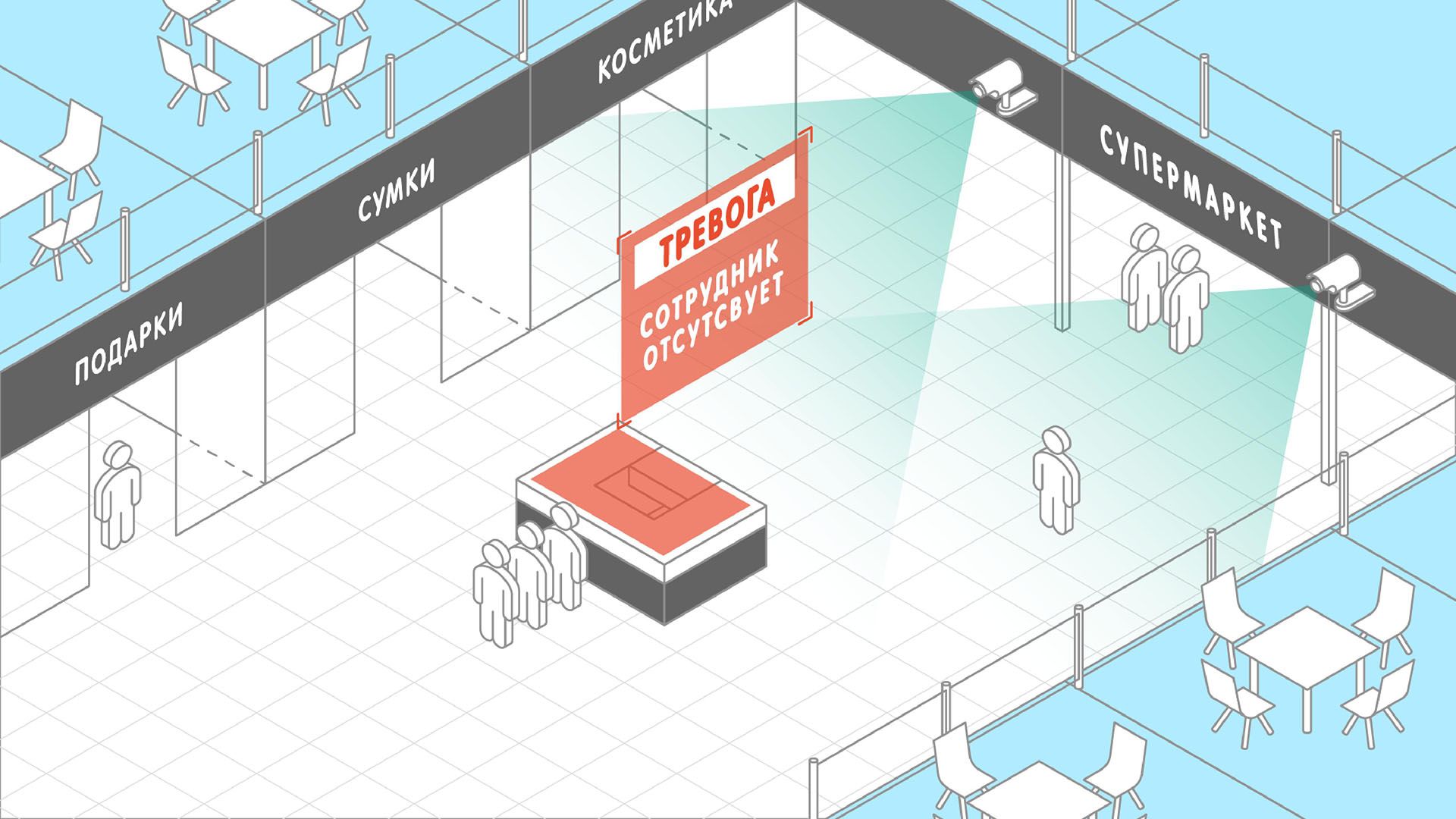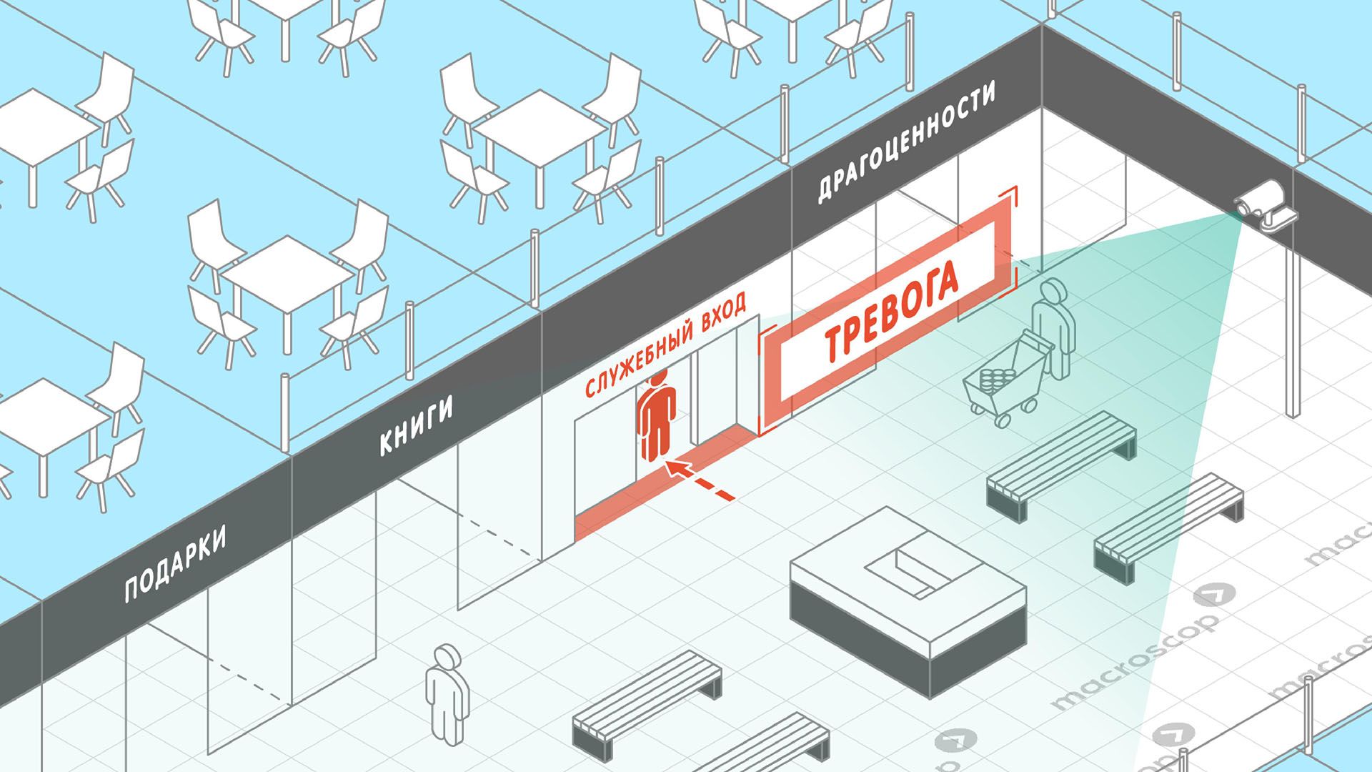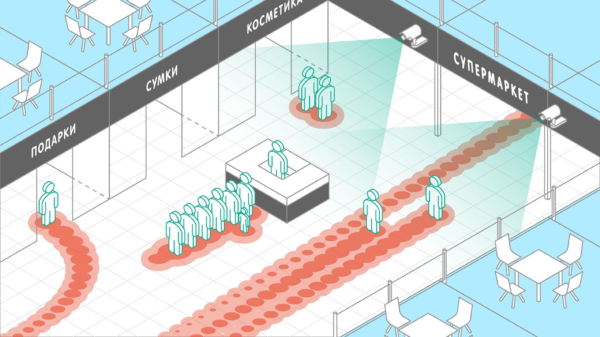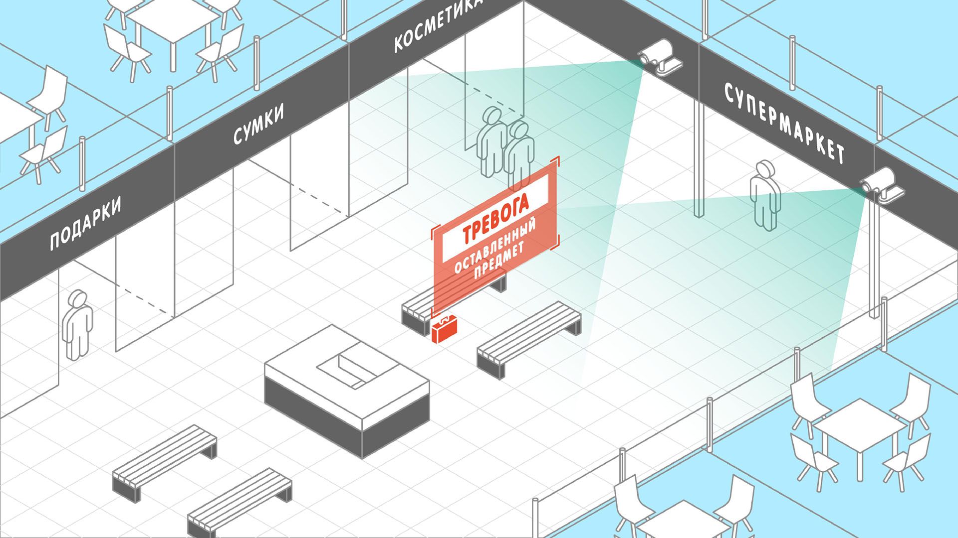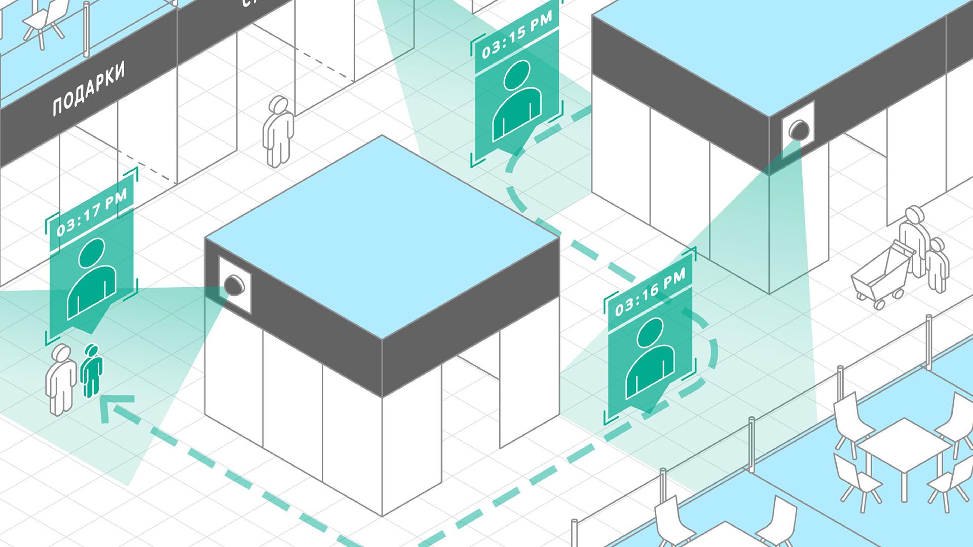 - отслеживать перемещение подозрительных лиц в районе торгового центра?
