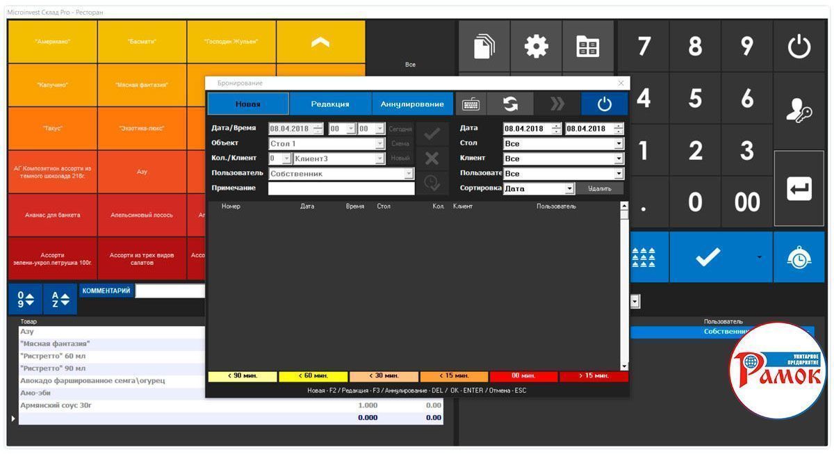 Программы автоматизации работы официанта или кассира проводит следующие операции: