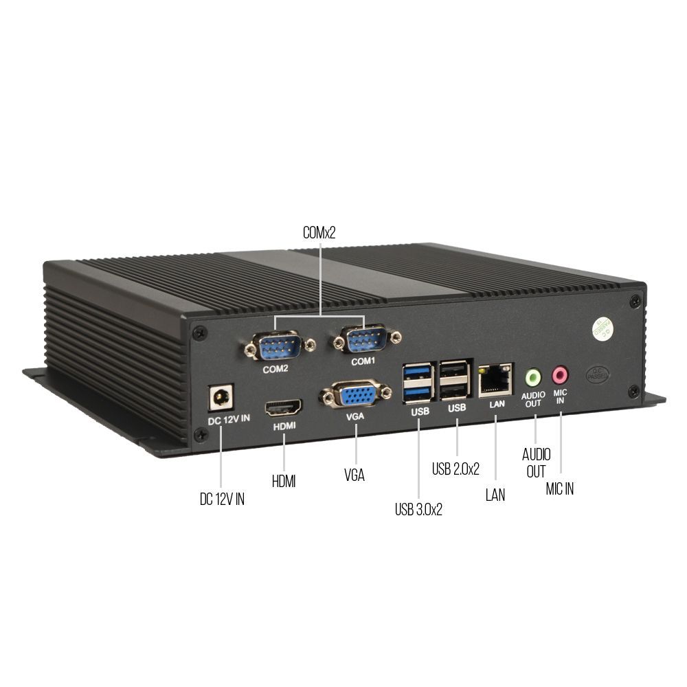Установленные интерфейсные порты обеспечивают подключение большого количества периферийных устройств. POScenter Z3 имеет 2*COM-порта (можно подать питание 5V или 12V), 6*USB (2 из которых USB 3.0), LAN, аудио. На борту также есть HDMI и VGA разъемы, с помощью которых можно выводить на один из мониторов картинку с высоким разрешением FullHD. LAN обеспечивает быструю и стабильную передачу данных по сети – со скоростью до гигабита.