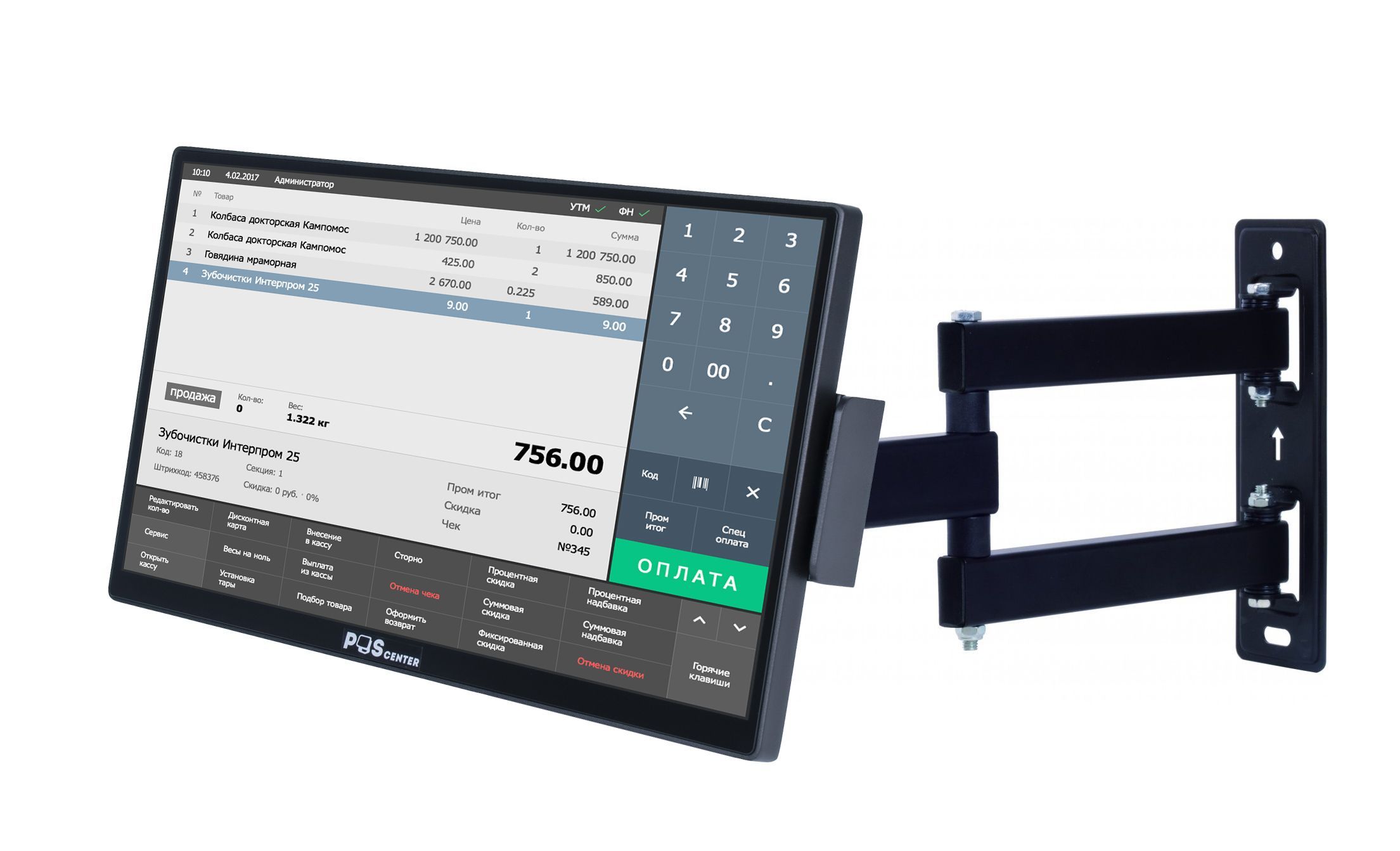 На Poscenter Platinum можно разместить широкий перечень периферийных устройств, исполненных в соответствующем дизайне: 2D-сканер, RFID, MSR, iButton, сканер отпечатка пальца, LCM или 10-дюймовый 2-й дисплей.