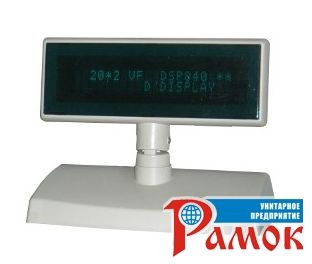 Интерфейс подключения USB. Отображает продукт, его цену, стоимость покупки, бегущую строку(падающие буквы при прокрутке). Настраивается наклон(30°) и поворот(300°). Установки настраиваются не только программно,но и через переключатели.