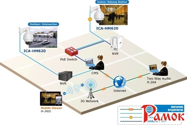 Предусмотрена совместная работа с PLANET CV3P или CMS (CV3-M256 / CV3-M1024), а также 3-осевым джойстиком (CV3-JS100), администратор может управлять ICA-HM620, выполнять панорамирование и наклон, ZOOM-IN и ZOOM-OUT функции из центра управления или удаленного сайта легко и свободно.